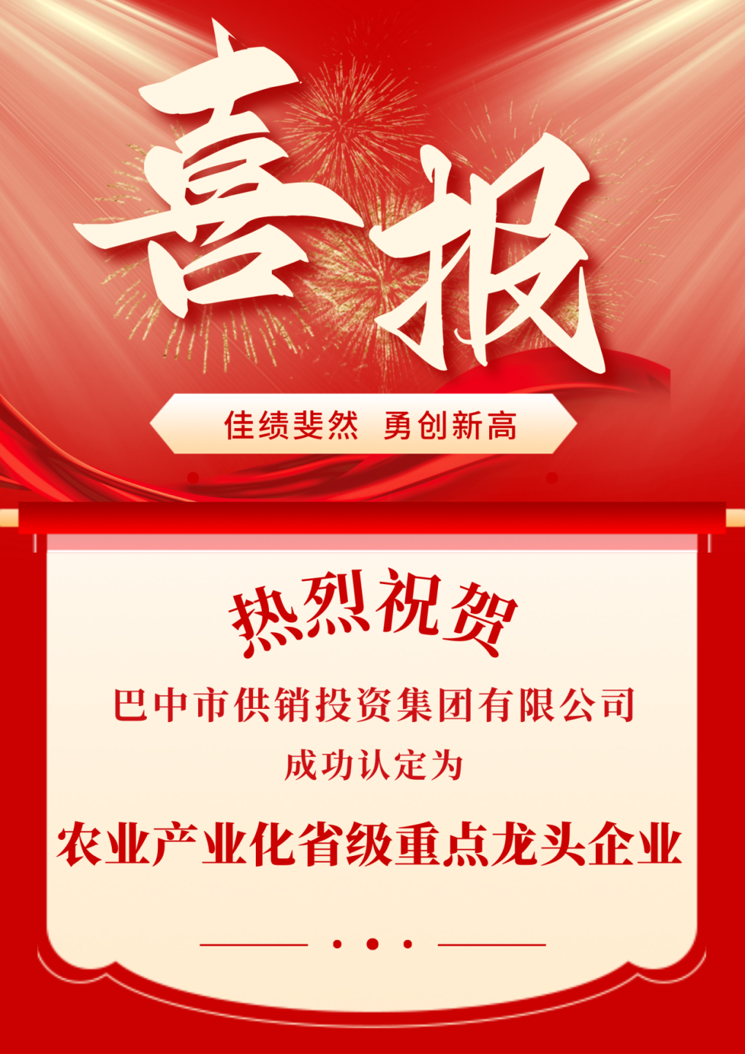 2024年12月27日,被四川省農(nóng)業(yè)農(nóng)村廳認(rèn)定為農(nóng)業(yè)產(chǎn)業(yè)化省級重點龍頭企業(yè)。