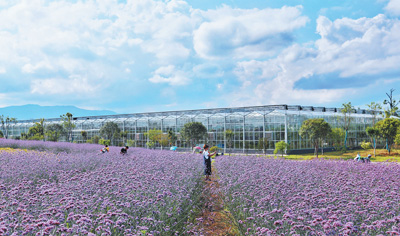 “四月鄉(xiāng)村”現代休閑農業(yè)產業(yè)園馬鞭草花絢麗開放,吸引游客“打卡”體驗。鄭 敏 攝