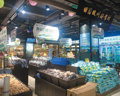 在黃山市綠色農產品區(qū)域公用品牌“田園徽州”元一旗艦店,當地特色農副產品琳瑯滿目。程央央 攝