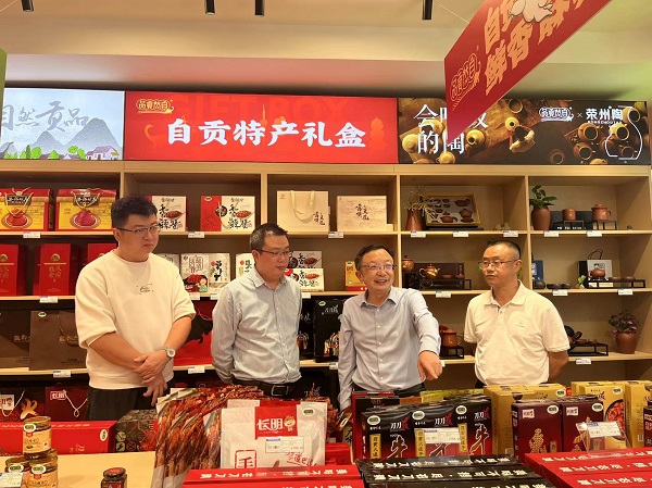 在自然貢品華商旗艦店,劉羽一行重點了解店面經(jīng)營管理模式、商品分區(qū)設(shè)置、產(chǎn)品開發(fā)銷售、供應(yīng)商合作模式、線上商城建設(shè)等方面情況,就推動打造“自然貢品”和“巴食巴適”兩個區(qū)域公用品牌集中展示展銷專區(qū)進行了交流探討。