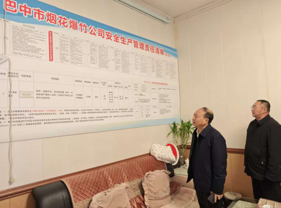 在市煙花爆竹公司,廖爵祿深入倉(cāng)儲(chǔ)庫(kù)房、展示中心,仔細(xì)核查消防設(shè)施配備、安全管理制度落實(shí)、從業(yè)人員安全培訓(xùn)等情況。他強(qiáng)調(diào),煙花爆竹行業(yè)安全風(fēng)險(xiǎn)高、責(zé)任重大,公司要始終把安全生產(chǎn)放在首位,切實(shí)強(qiáng)化安全意識(shí),嚴(yán)格落實(shí)主體責(zé)任,常態(tài)化開(kāi)展安全隱患排查整治,完善應(yīng)急處置預(yù)案,堅(jiān)決落實(shí)好“工作+安全”要求,守住安全生產(chǎn)底線,確保行業(yè)安全平穩(wěn)運(yùn)行。
